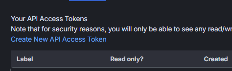 - Click Create New API Access Token.
