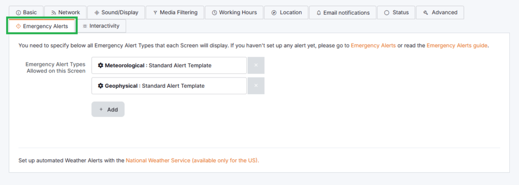 For my player, I have set up 2 Emergency alerts. If I sent a fire alert from my CAP system, this alert would not reach the player because it has not been added to the emergency alert type.