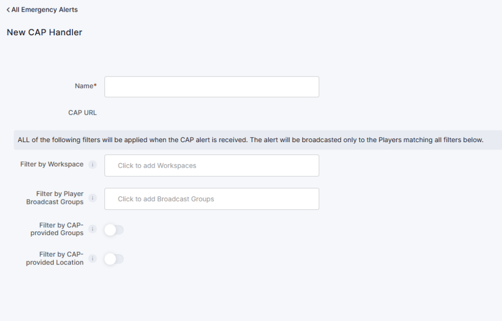 After configuring the Emergency Alerts to your player(s), creating your first CAP handler is time.