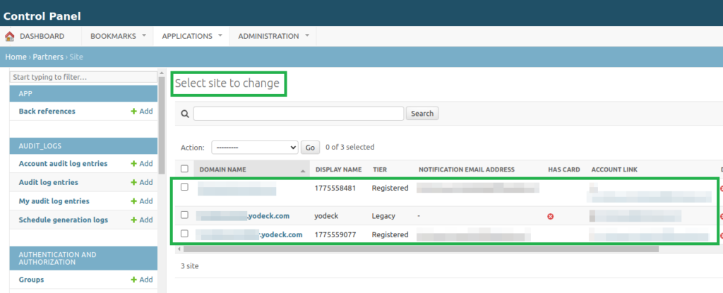 Step 2: Select the white-label site you want to update