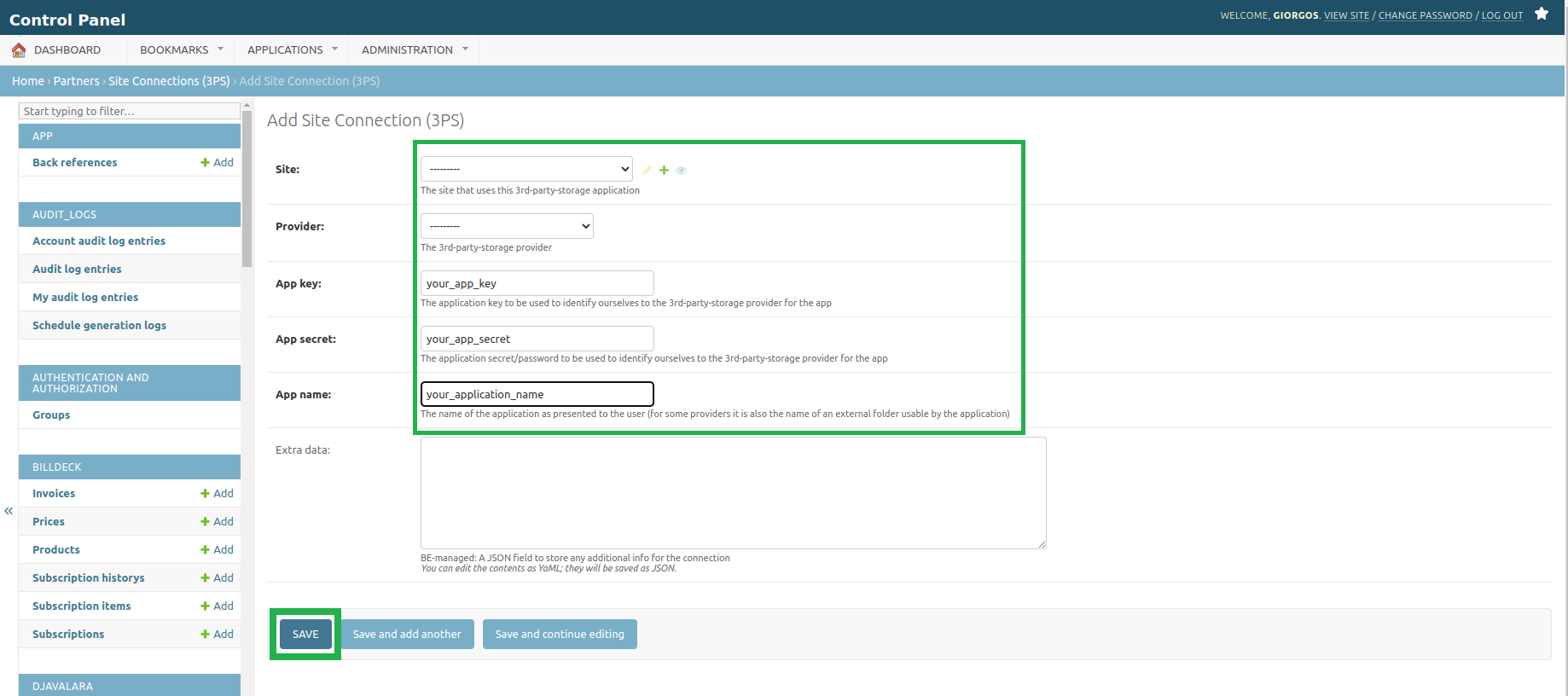 Go to your Yconsole and create a yconsole --> Partners --> Site Connection (3PS) record for the new app, following the instructions below. Then, press Save.
