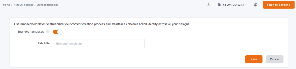 - Inside the “Branded Templates” tab under the Layout view page, you can see the following settings option.