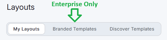 ℹ️Both Basic and Premium accounts feature a “Discover Templates” tab, which can be found on the Layouts page as well as in the Layout Editor’s Templates tab. In contrast, only Enterprise accounts have access to an additional “Branded Templates” tab, available on both the Layouts page and the Layout Editor’s Templates tab.