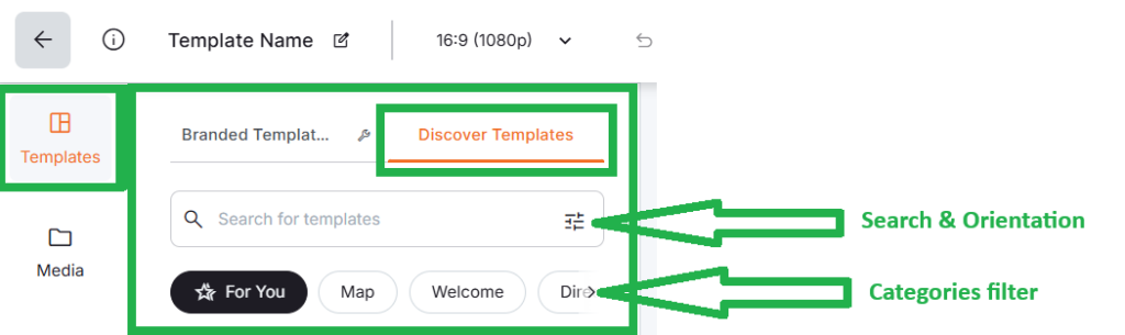 There are two main paths in finding and browsing ready-made templates in the Yodeck platform.