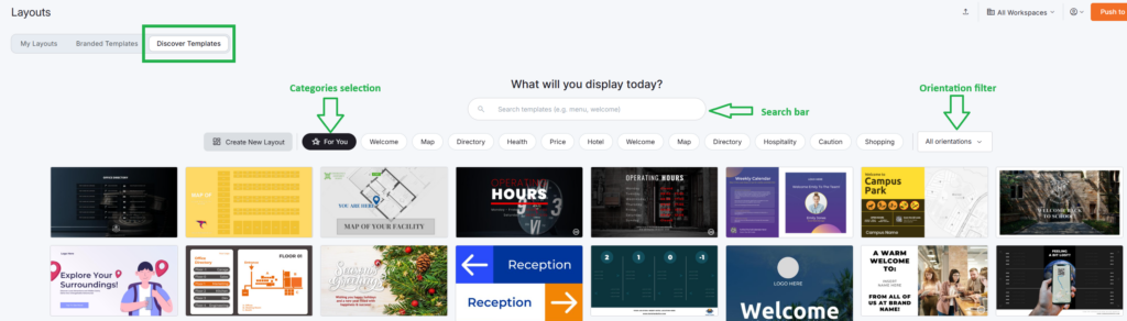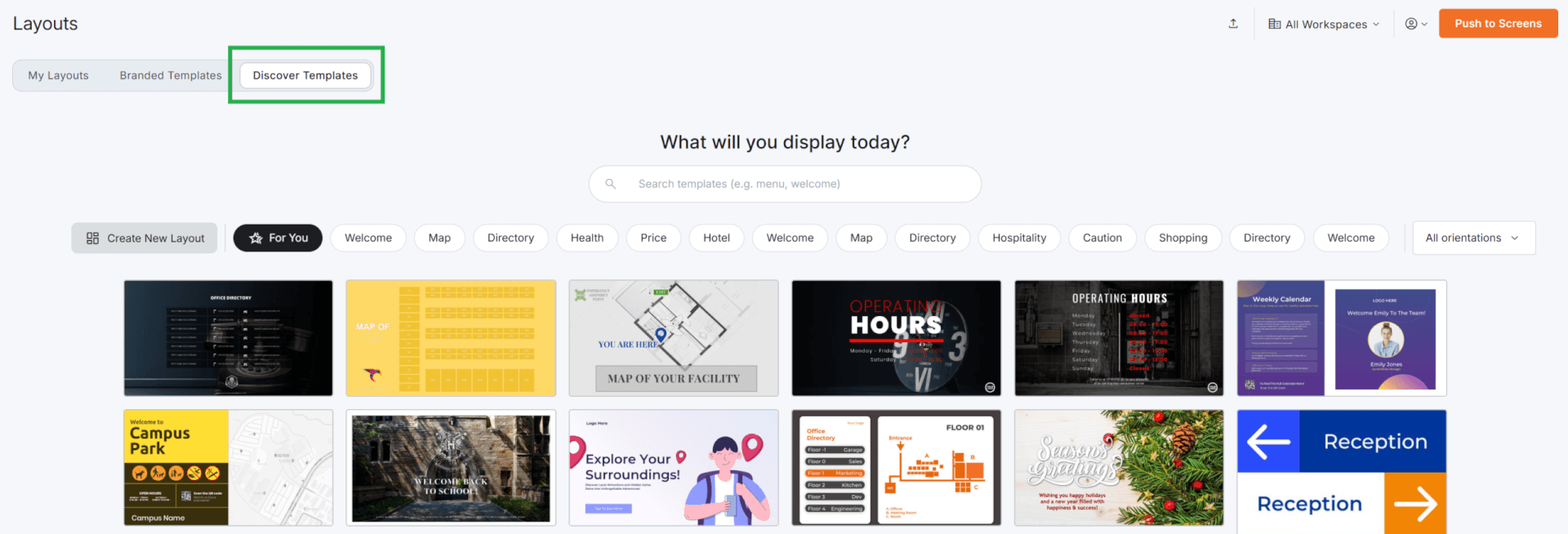 Whether you’re starting from scratch or updating an existing layout, templates provide a fast way to design engaging content for your screens.