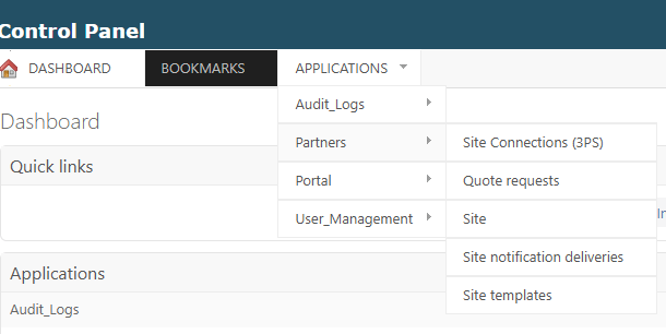 - Navigate to Applications → Partners → Site.
