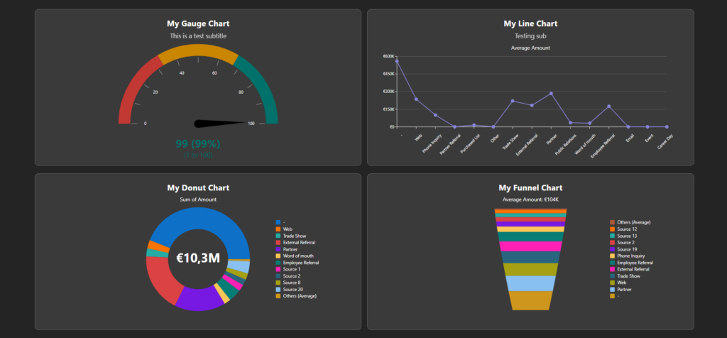 This means your charts may not look exactly the same as they do in Salesforce. In most cases, differences are caused by API limitations and by the need to keep charts readable on digital signage screens.