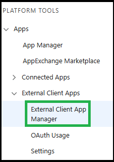 - Click External Client Apps, then External Client App Manager.