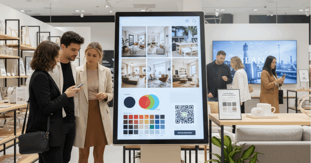 💡 Benefit Example: A home décor store uses digital kiosks and QR codes to let customers explore color palettes, check stock in real time, and order items directly for home delivery. The result? A faster shopping experience and a store that feels connected.